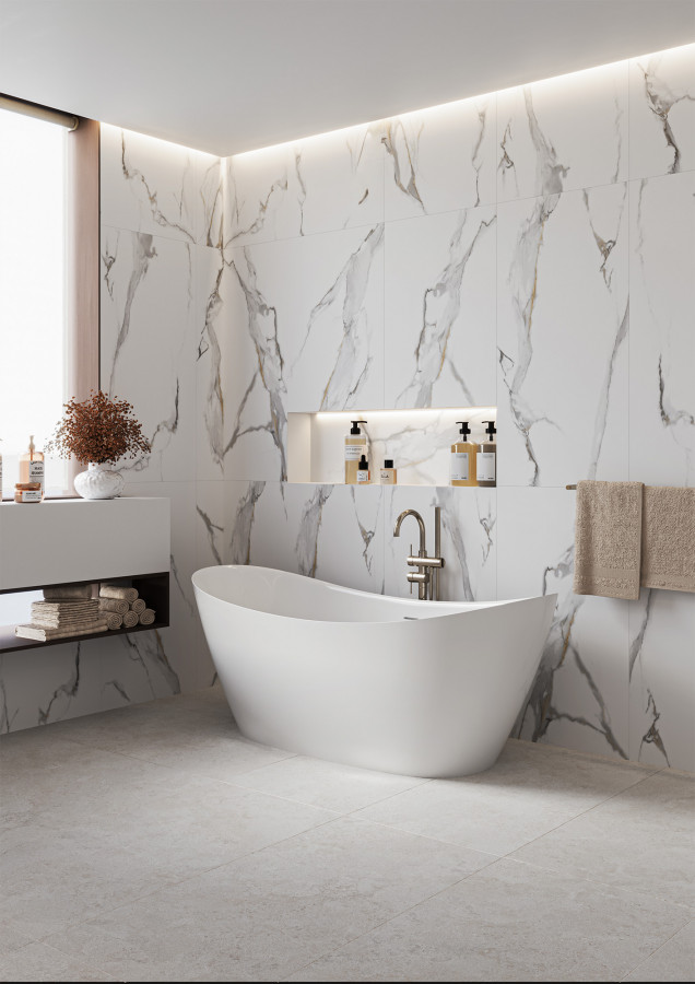 Керамогранит Lunarossa Statuario Mercury Satin сатинированная с карвингом 120x60 9мм Staro
