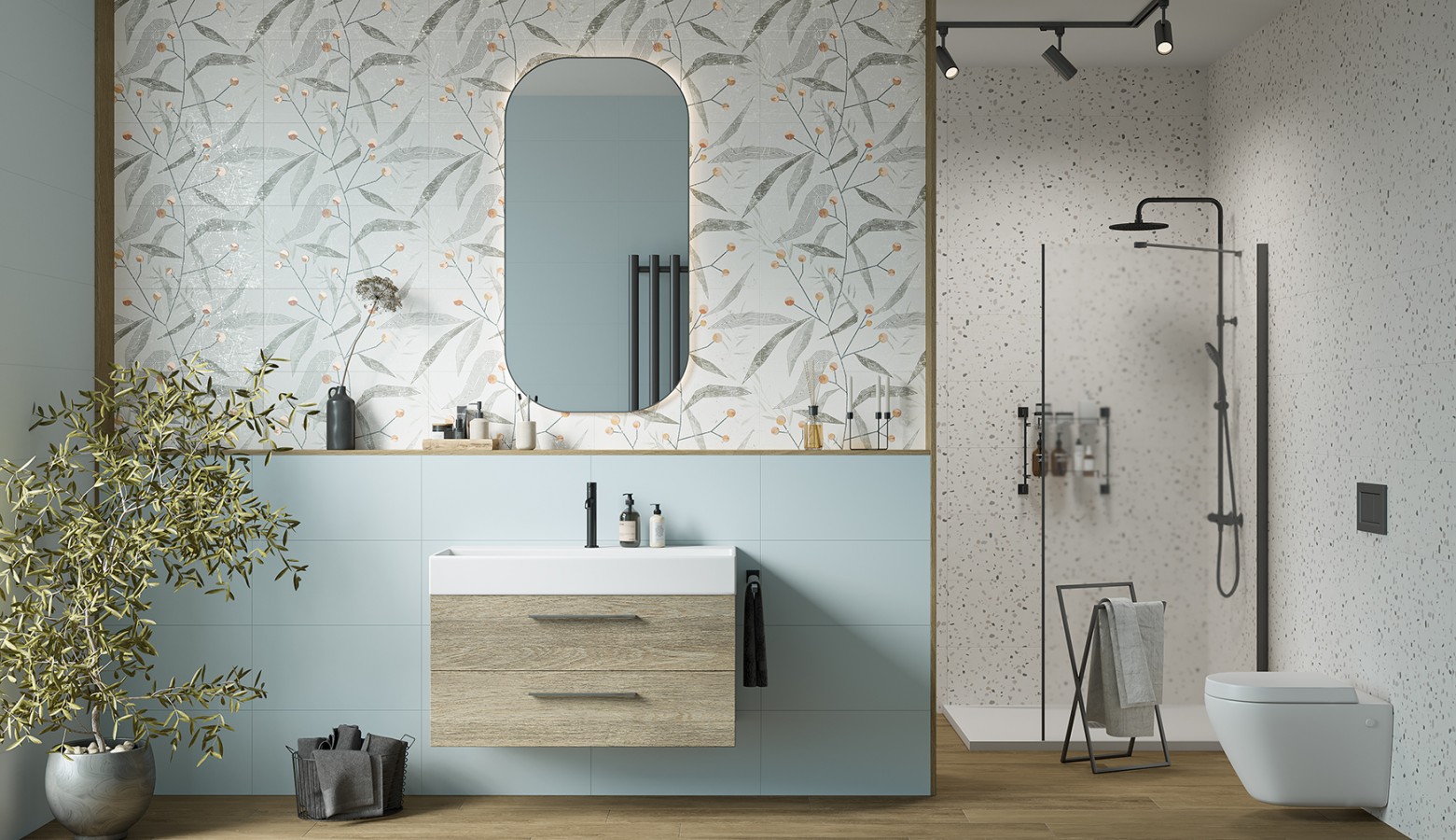 Плитка 60x30 Palette Wave матовая голубой 9мм Creto