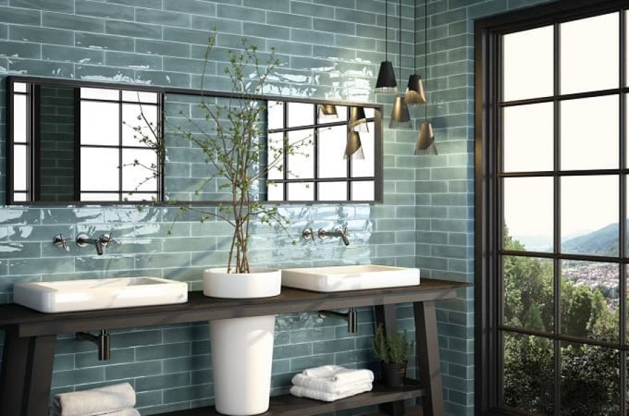 Плитка 30x8 настенная Opal Emerald гладкая + рельефная глянцевая зелено-синий Cifre