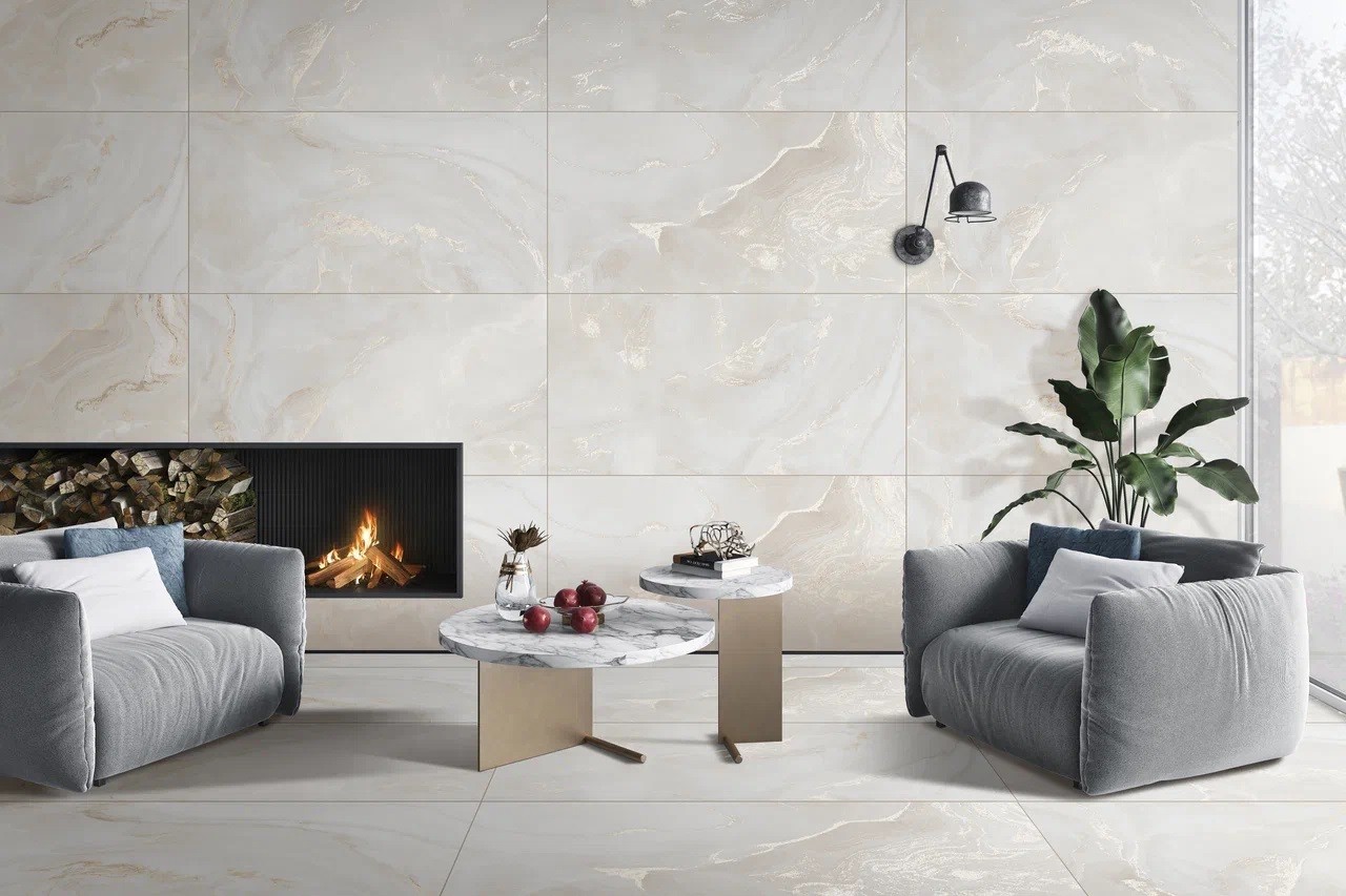 Плитка настенная 120x60 Elite Onyx Crema Matt Carving матовая Realistik