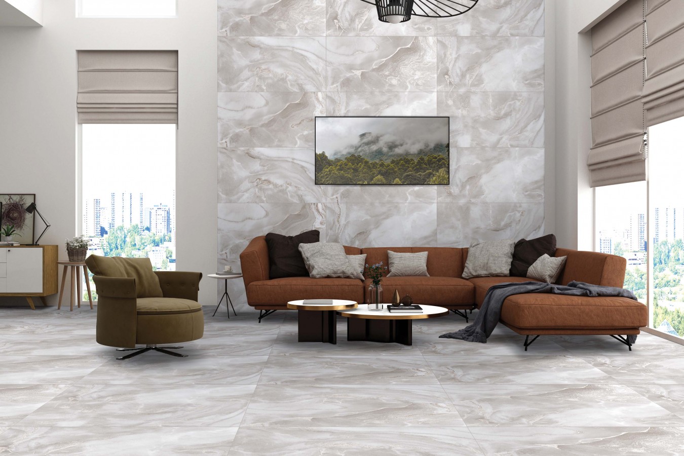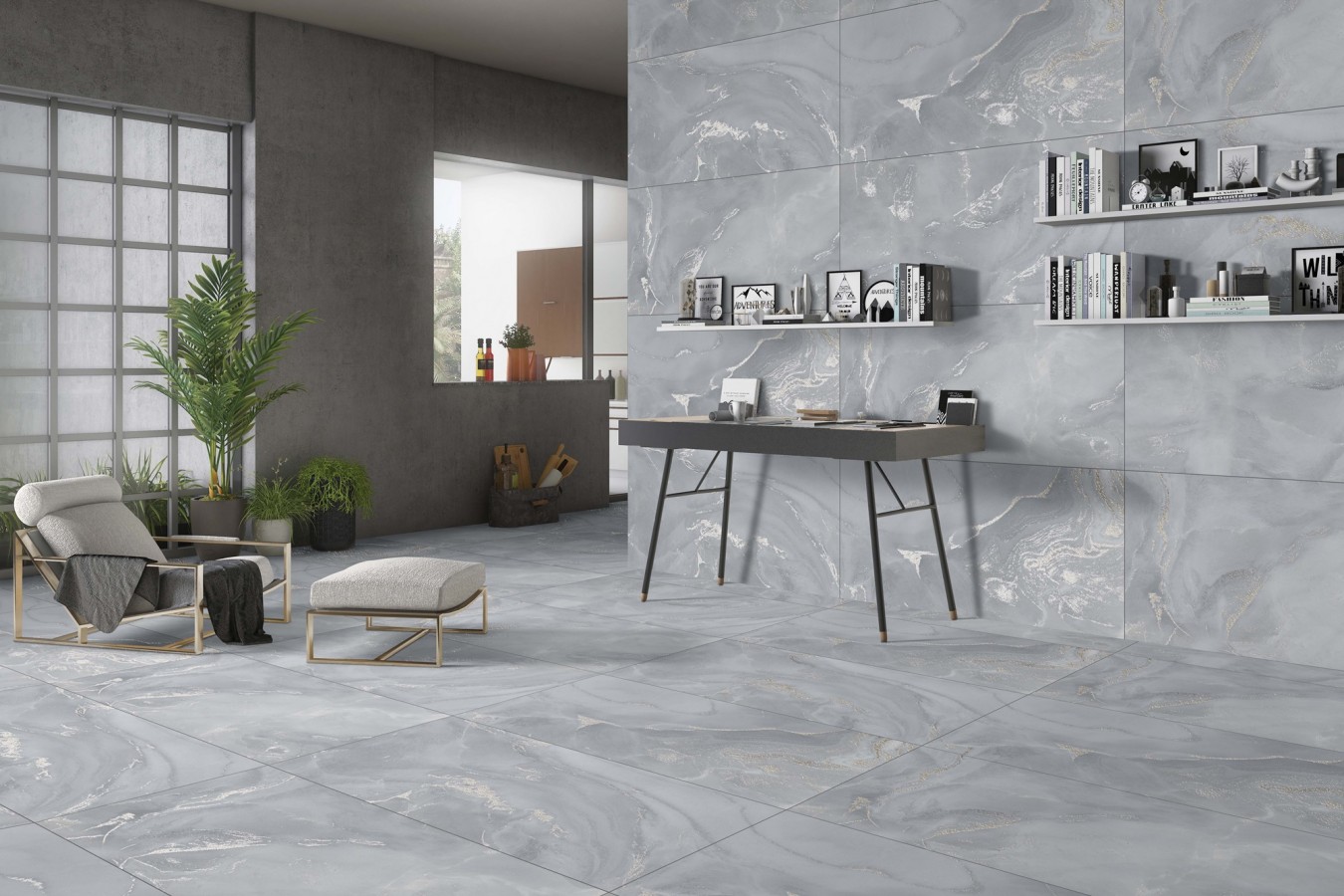 Плитка настенная 120x60 Elite Onyx Light Grey Matt Carving матовая Realistik