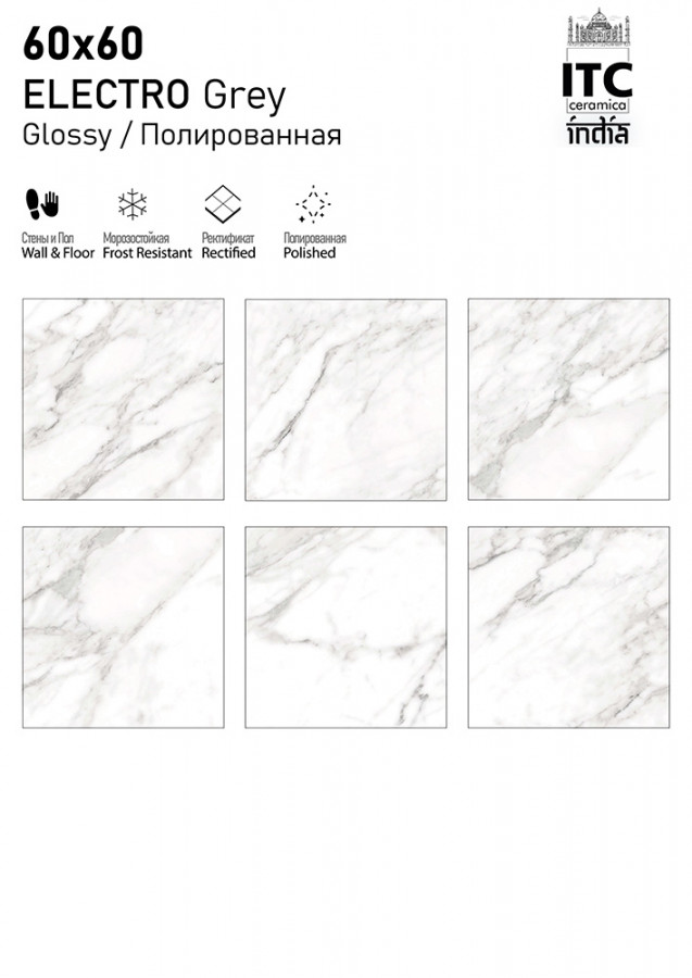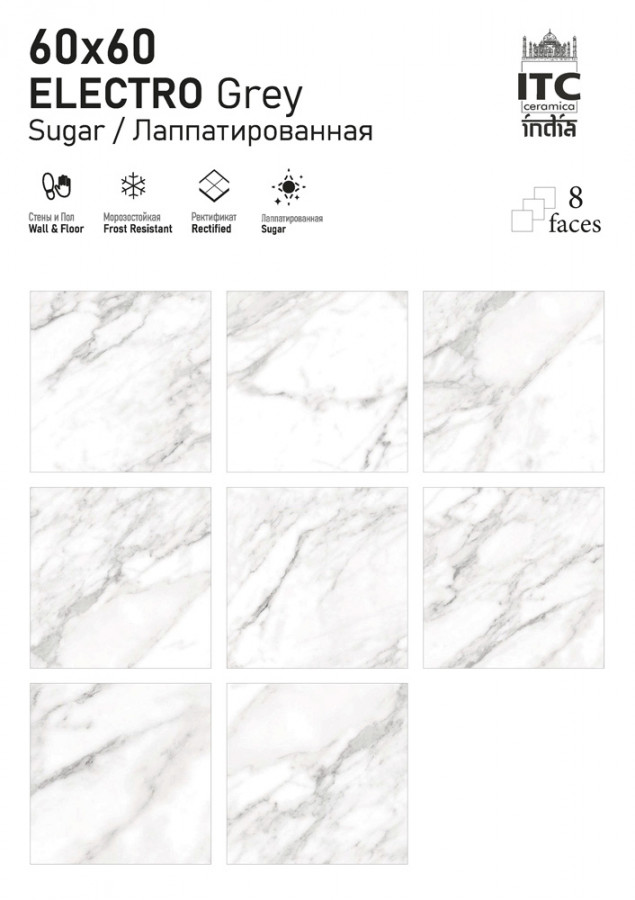 Керамогранит 60x60 8.7мм матовая ITC India Electro Grey Sugar универсальная
