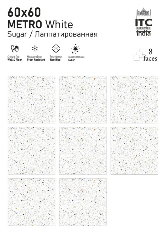 Керамогранит 60x60 8.7мм полированная ITC India Metro White Glossy универсальная