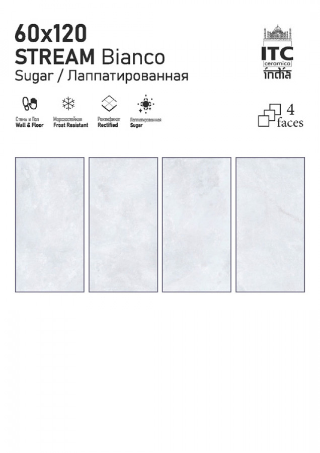 Керамогранит 60x60 8.7мм матовая ITC India Stream Bianco Sugar универсальная