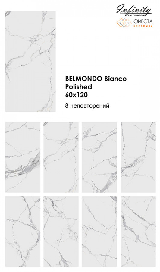 Керамогранит 120x60 9мм полированная Infinity Ceramica Belmondo Bianco Polished универсальная