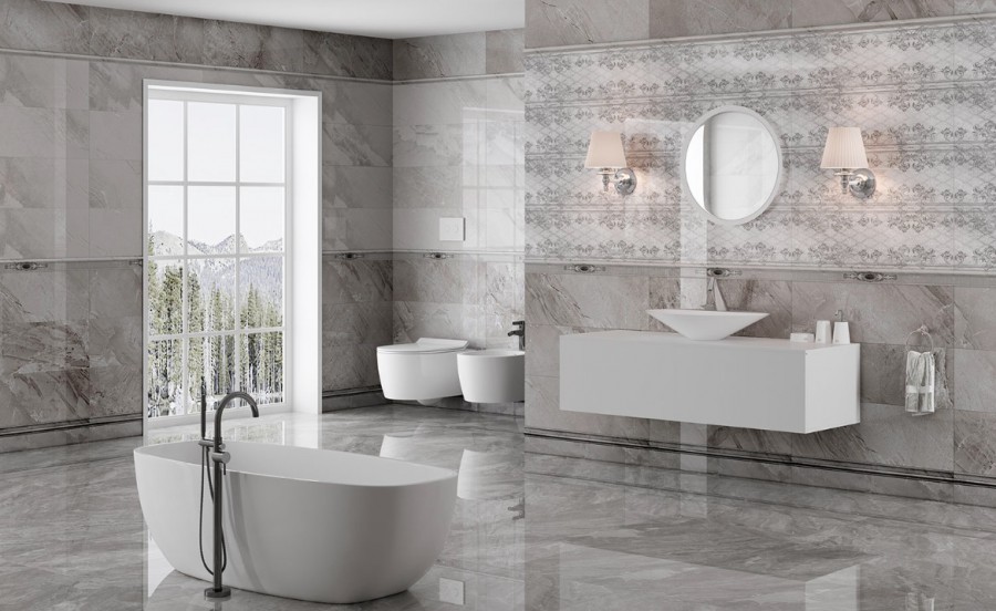 Плитка Eurotile декор Eclipse Gray 775 глянцевая 90x30 12мм
