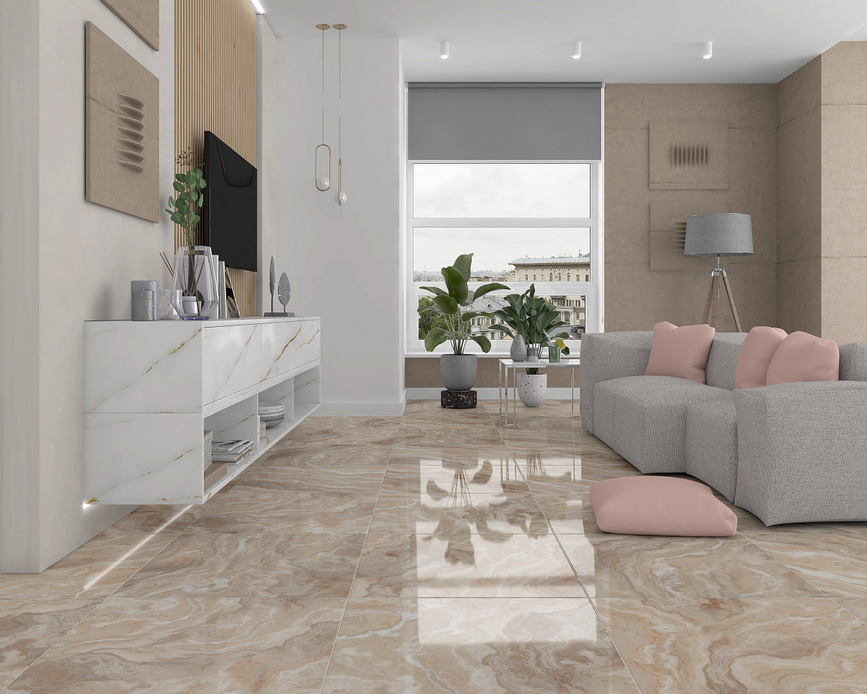 Плитка напольная керамогранит Laparet 60x60 Крема бежевый K-1602 LR Crema полированная глазурованная 60x60