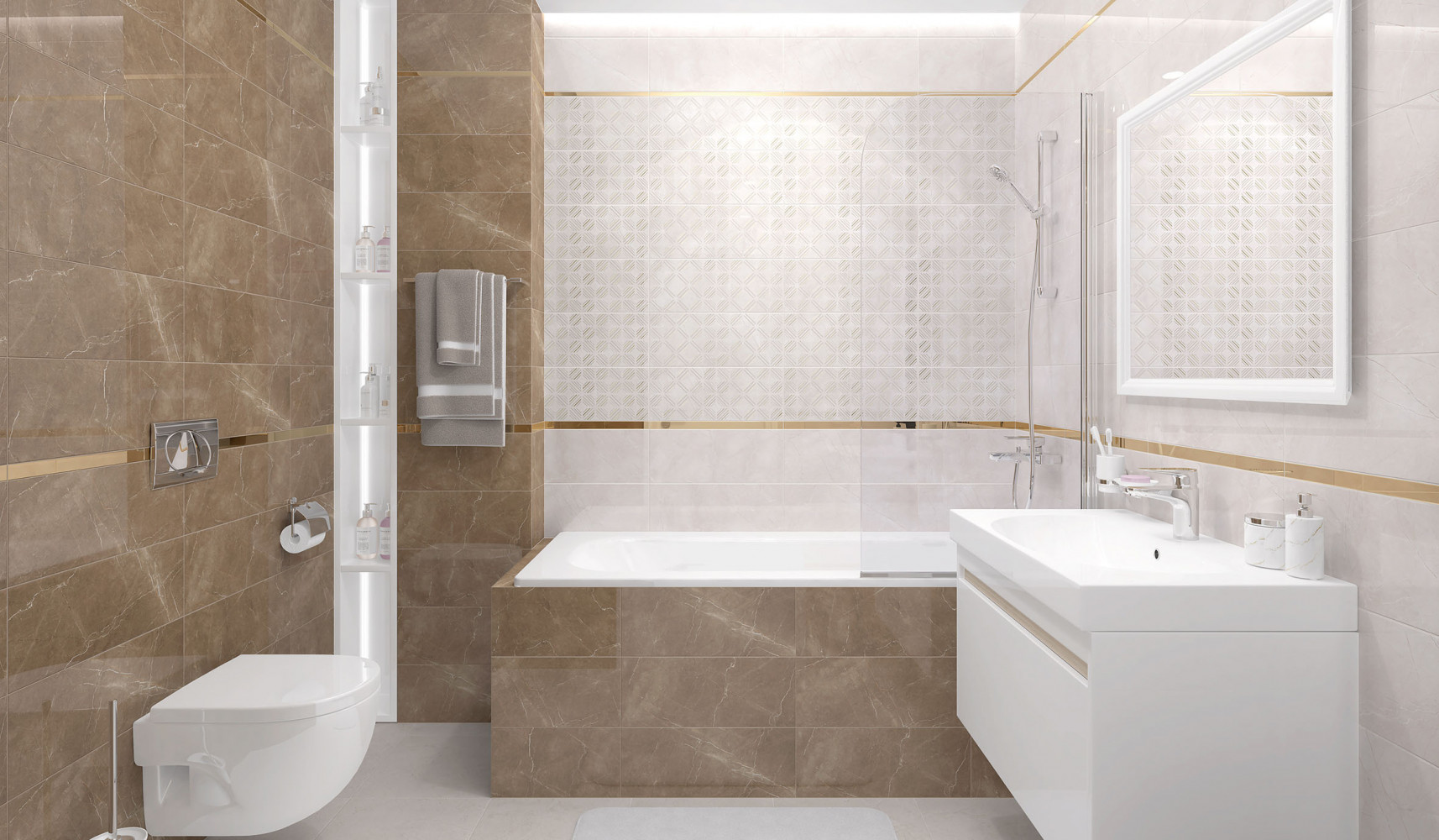 Плитка настенная Laparet 50x20 Фронда бежевый Fronda глянцевая глазурованная 50x20