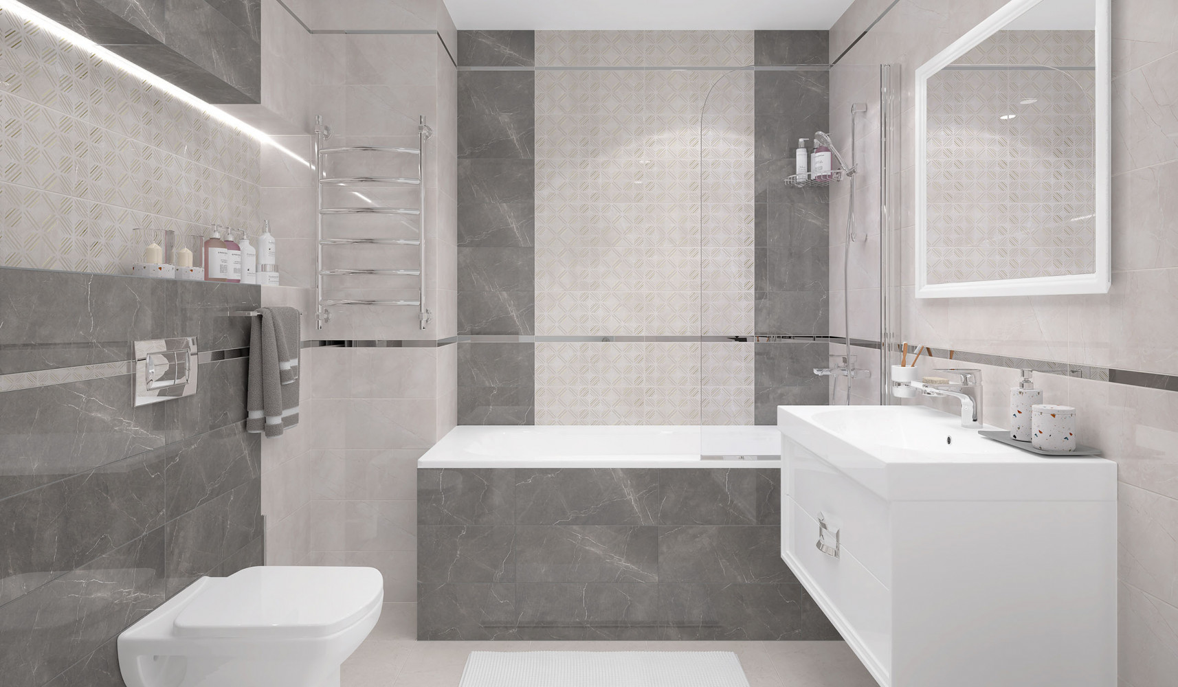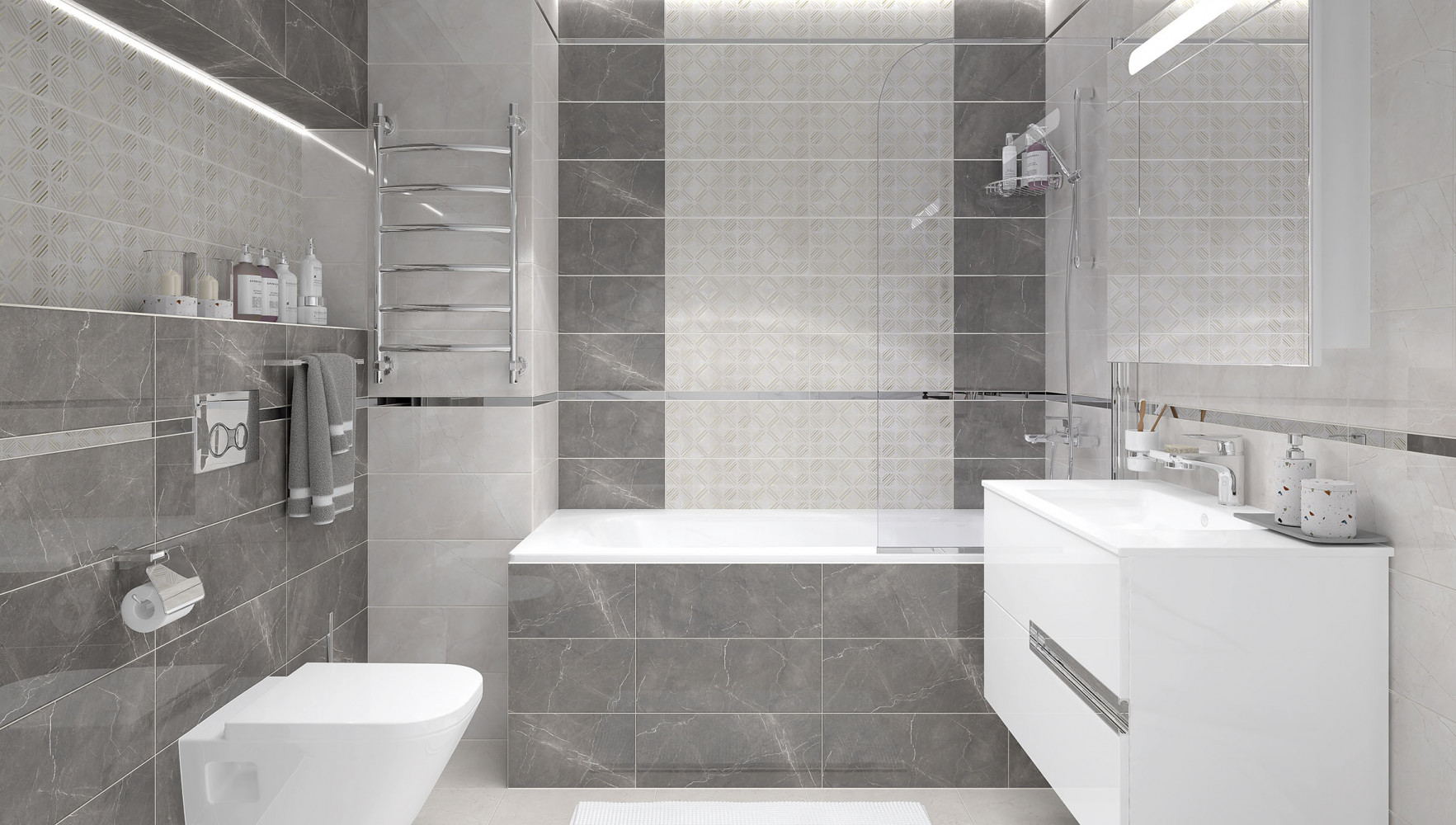 Плитка настенная Laparet 50x20 Фронда серый Fronda глянцевая глазурованная 50x20