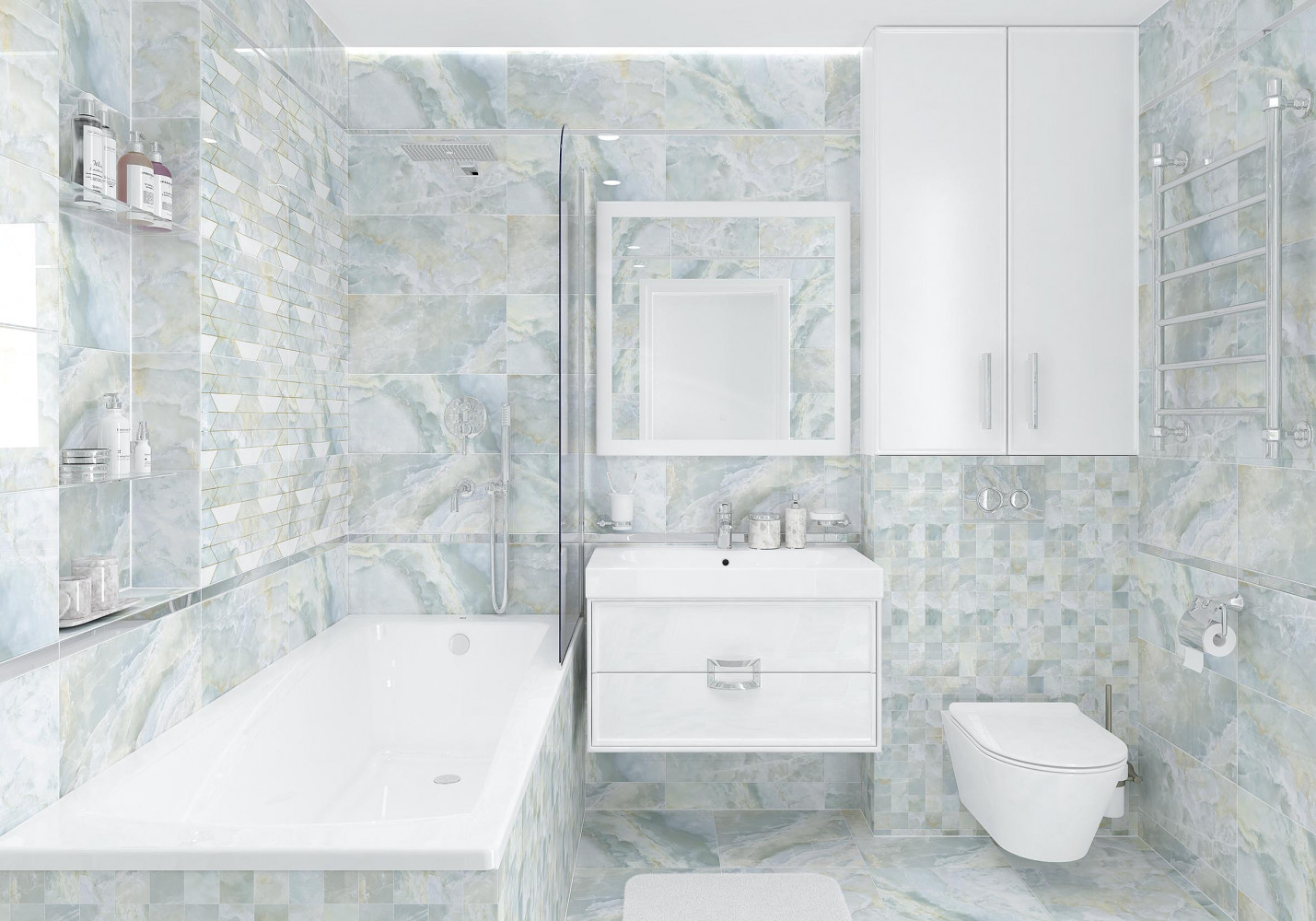 Плитка настенная Laparet 50x25 декор Скай голубой Sky глянцевая глазурованная 50x25