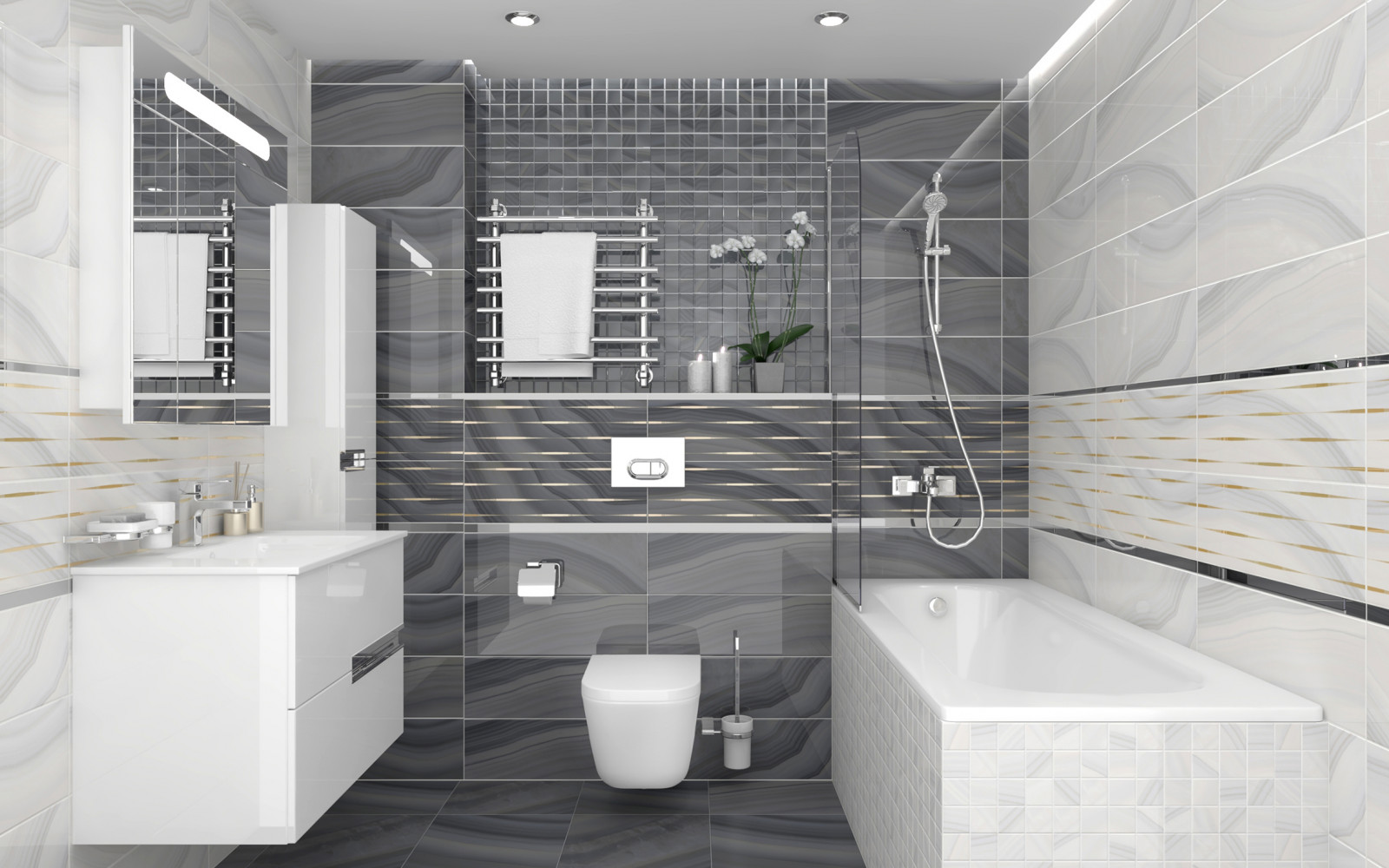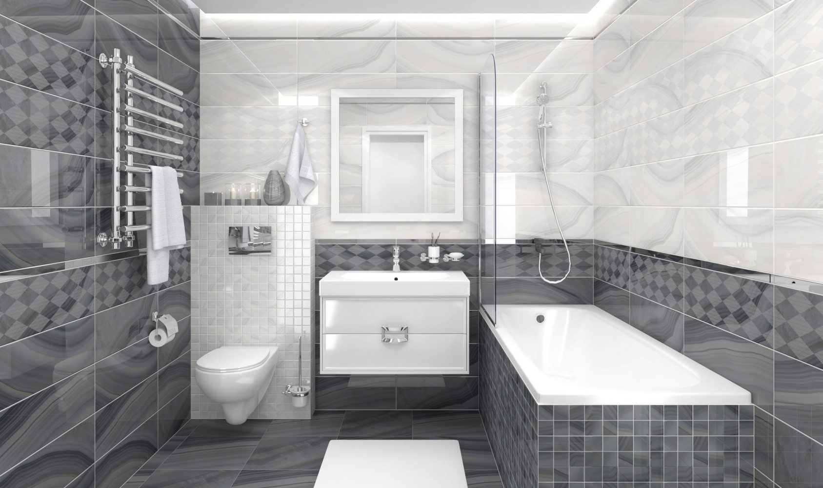 Плитка настенная Laparet 60x20 декор Гео серый VT C43 60082 глянцевый Агат глянцевая глазурованная 60x20