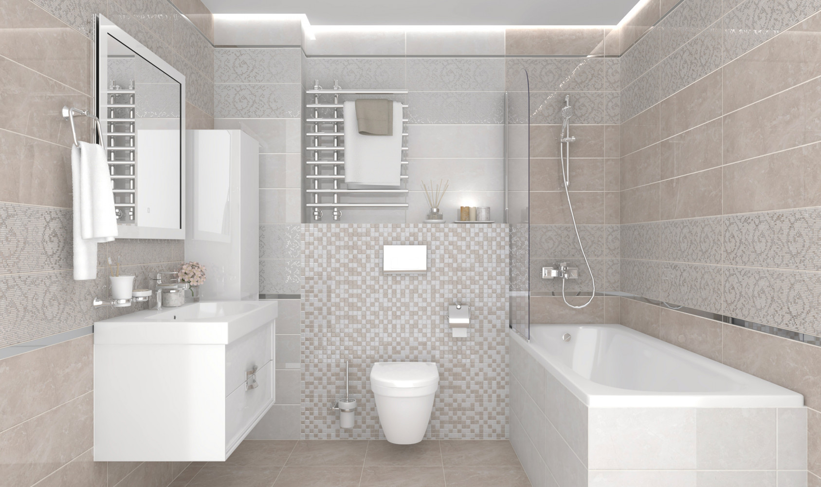 Плитка настенная Laparet 60x20 декор Рома бежевый светлый AD A485 60011 глянцевый Электра глянцевая глазурованная 60x20