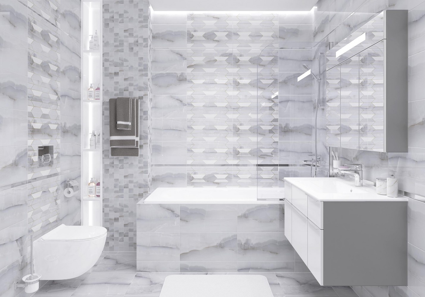 Плитка настенная Laparet 50x25 серый 34092 Дримс глянцевая глазурованная 50x25