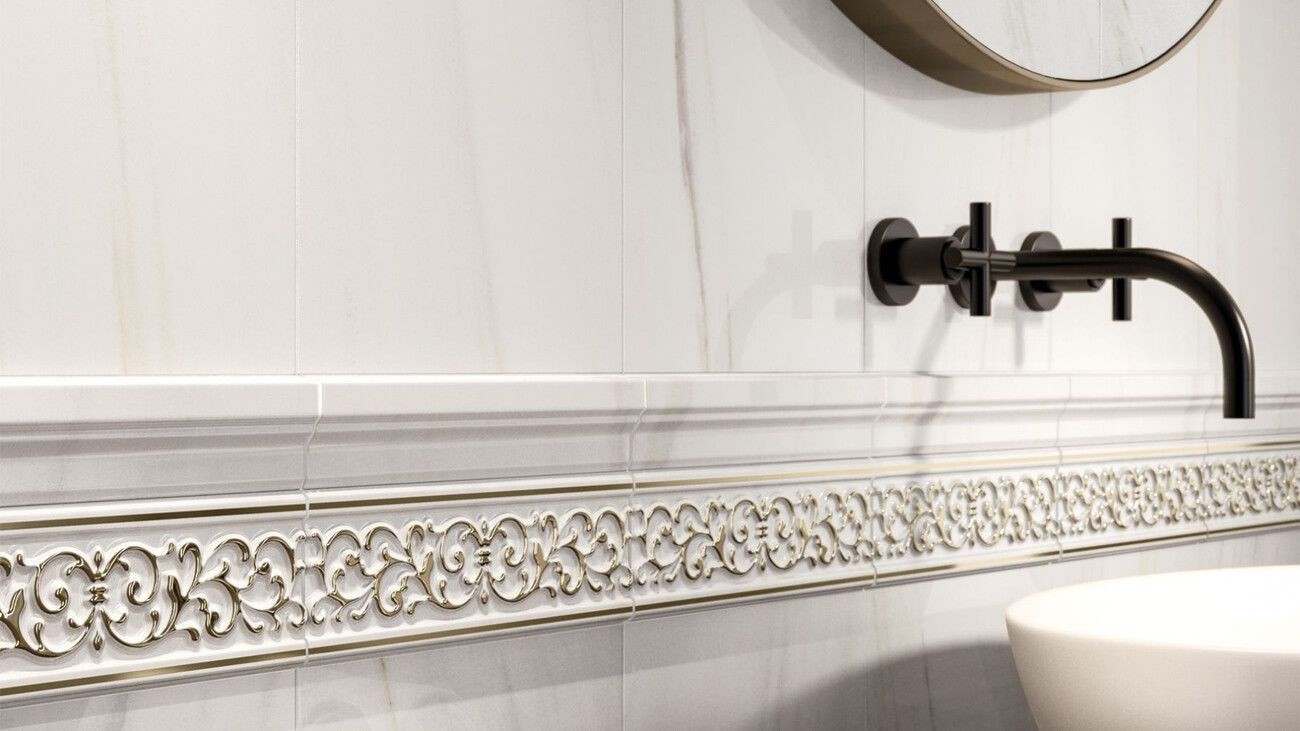 Плитка 75x25 Италон Charme Extra Arcadia Ins Golden Line 25x75 Шарм Экстра Аркадиа Вст Голден Лайн 25х75 (600080000370)